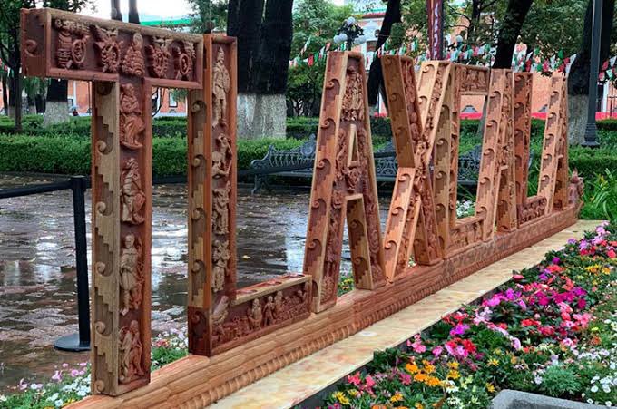 Me explico, y me dejo de mareos. Inexcusablemente, Tlaxcala tiene sus letras. Ya sabes, esos rótulos estorbosos pensados pata la foto y que estandarizan la experiencia turística. La diferencia es que las letras de Tlaxcala parecen de madera tallada! Y cuentan historias.